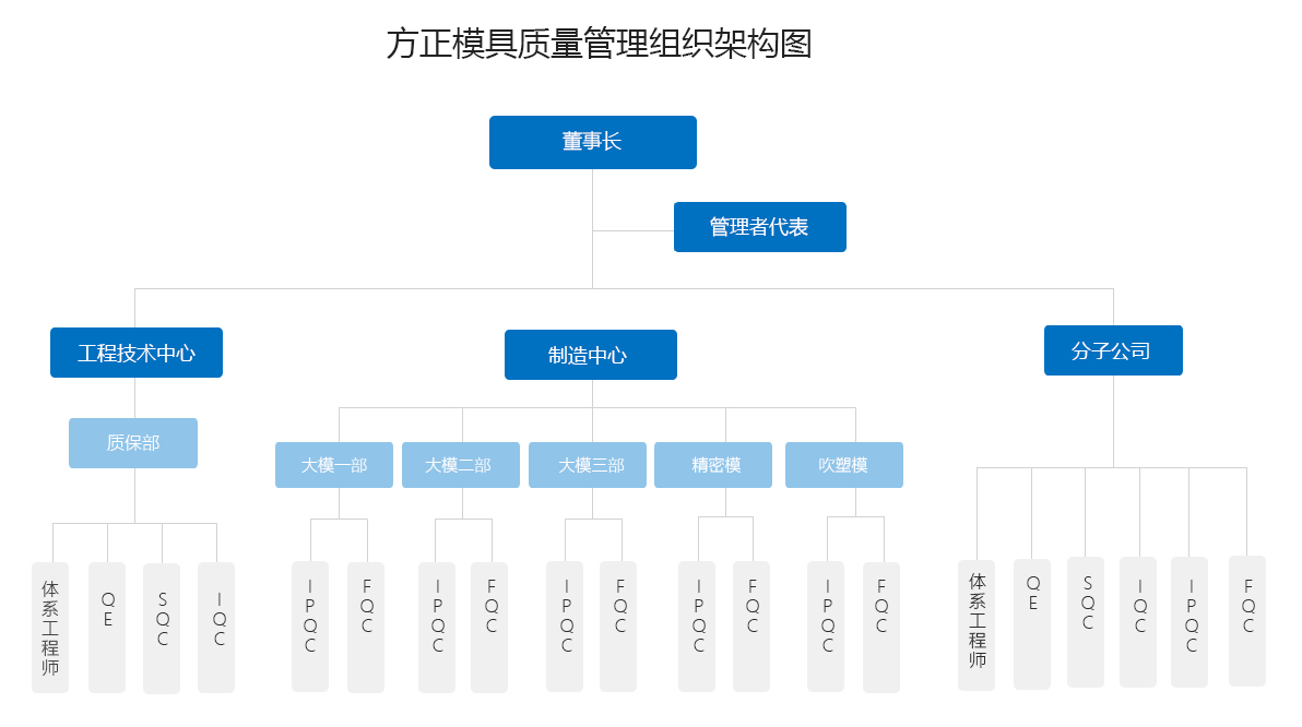 “技術(shù)展現(xiàn)實(shí)力,品質(zhì)贏得信賴”,在方正公司,技術(shù)是第一生產(chǎn)力,而質(zhì)量則是贏得客戶信賴的保障,方正的質(zhì)量團(tuán)隊(duì)攘括了進(jìn)料檢驗(yàn)、過程檢驗(yàn)、產(chǎn)品檢驗(yàn)、電極檢驗(yàn)、出貨檢驗(yàn)及質(zhì)量管理體系,在各類精密測量設(shè)備資源及具有相關(guān)資質(zhì)的質(zhì)量人員的支持下,真正意義上實(shí)現(xiàn)了從原料、過程、最終檢驗(yàn)對模具生產(chǎn)質(zhì)量的嚴(yán)格控制,并通過質(zhì)量管理體系的實(shí)施,實(shí)時(shí)監(jiān)控和提升整個(gè)公司的質(zhì)量管控程度。